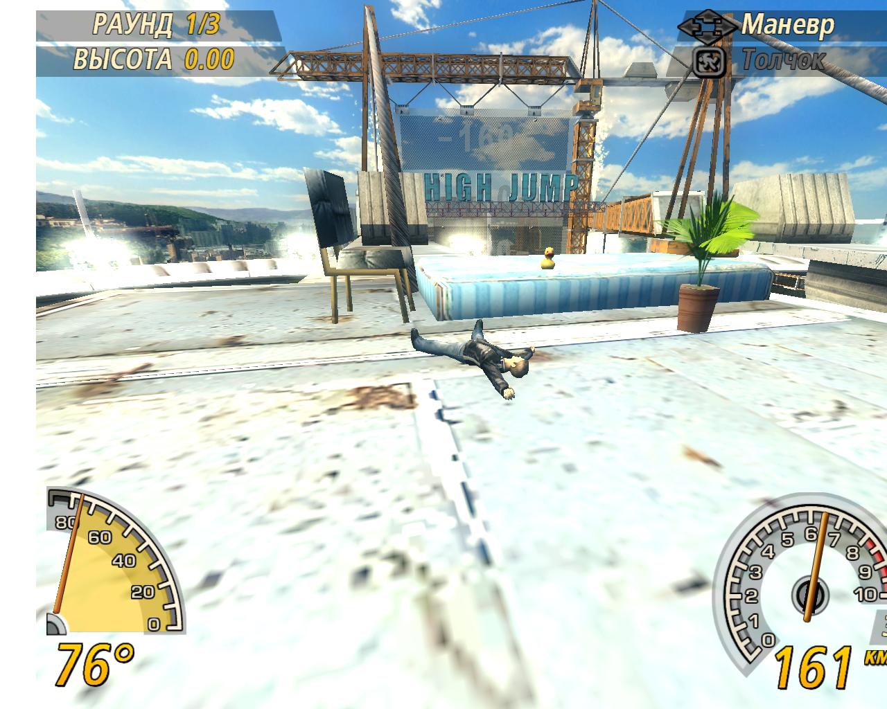 любой но лучше всего получается на High Jump там стоит экран где тебя показывают так вот как только началось дави на газ, измени направление на экран и под 40-60 градусов прыгай на него.Вот так
