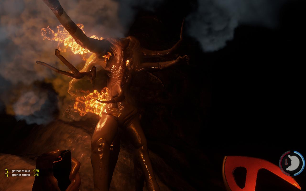 Попробовал ещё раз. Вроде стало проще немного, но... Отбиться можно только благодаря глюку. Когда заползаешь в свой шалаш (тот самый который предлагается построить вначале) они не могут тебя достать практически, зато их можно бить.