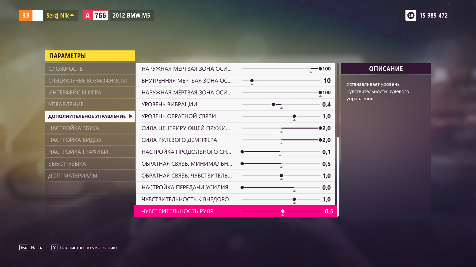 Приветствую. Являюсь обладателем руля pxn v9(без обратной связи, но с коробкой передач и тремя педалями). С самого начала меня преследует проблема: в режиме d-input (кратко, это когда руль видит форза и работает вместе с мкпп) с колес почему-то убирается ограничение на поворот при скорости! То есть, в реальной жизни, к примеру, я не смогу выкрутить колеса до упора на скорости 100 км/ч, мне это будет непосильно, и форза имитирует это сопротивление тупо ограничением поворота. А вот руль без проблем позволяет это сделать за очень маленький промежуток времени, из-за чего колеса встают боком и вместо резкого поворота я получаю тупо неуправляемый дрифт.