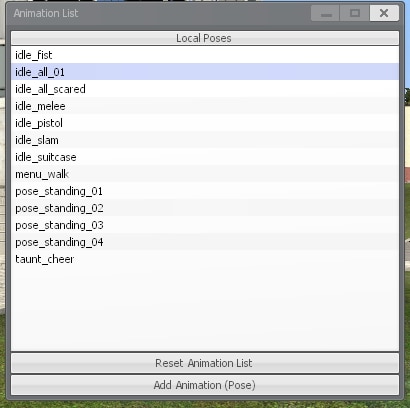 - Список анимаций в настройках аддона