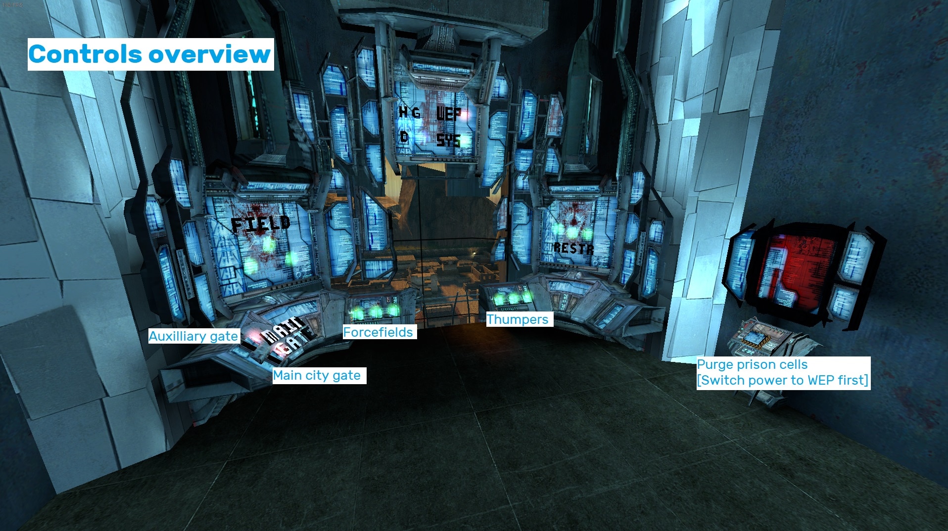 ⚠️ Это отключит силовые поля, виброплиты и главные ворота, пока питание не будет восстановлено! - После переключения питания нажмите загоревшиеся кнопки в диспетчерской Центрального КПП или в тюремной контрольной комнате.