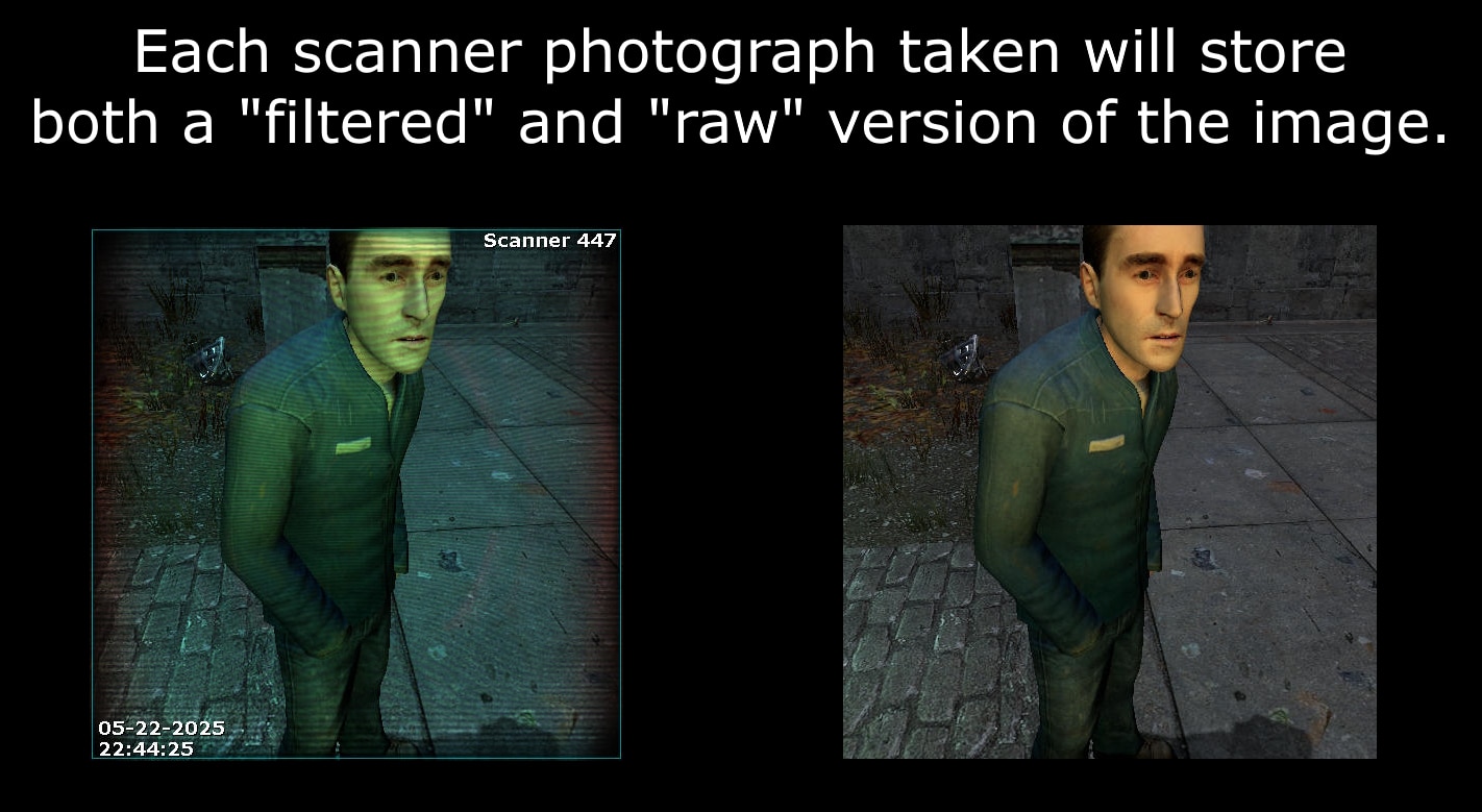Это аддон благодаря которому каждый раз, когда городские сканеры делают фотографии, они делают настоящие скриншоты того, на что нацелены. Все сделанные снимки хранятся в по пути "garrysmod\garrysmod\data\cscanners\"
