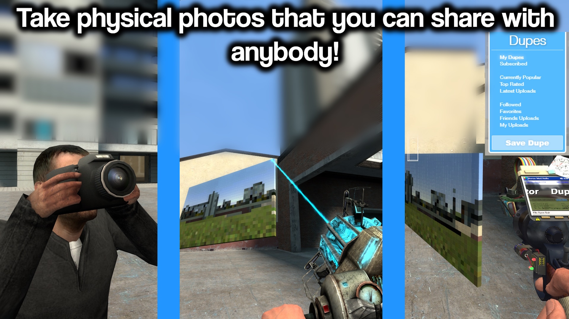 Используя настоящую камеру, вы можете создавать физические фотографии низкого разрешения, которыми сможет поделиться и к которым сможет получить доступ любой человек, даже если он играет в обычную версию! Найти камеру можно в разделе оружий в категории "Другое".