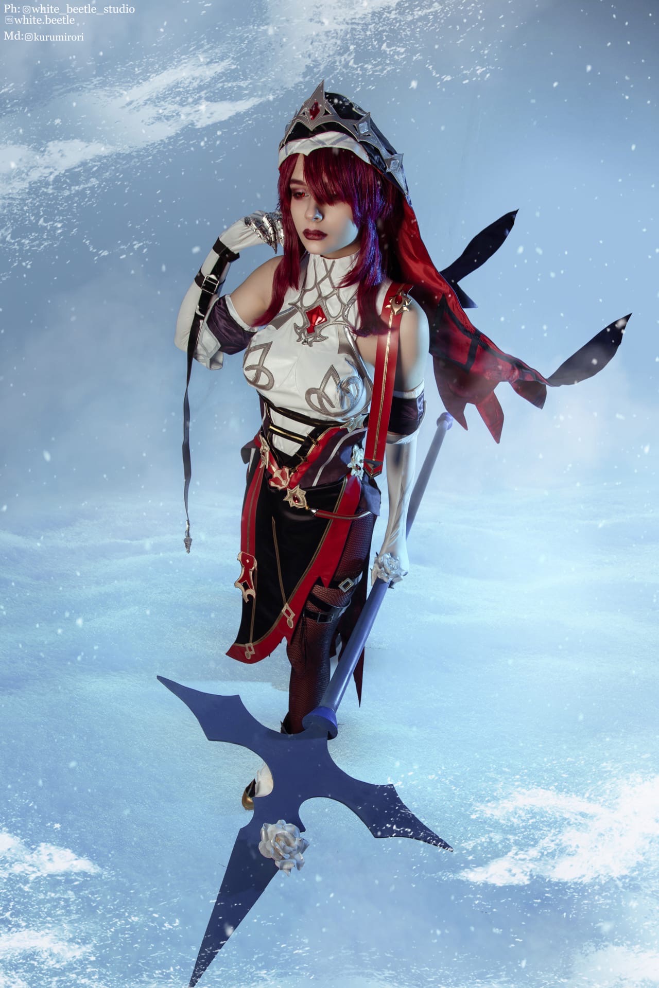 Российская модель kurumirori перевоплотилась в Розарию из игры Genshin Impact. Снимки опубликованы в в Instagram девушки.