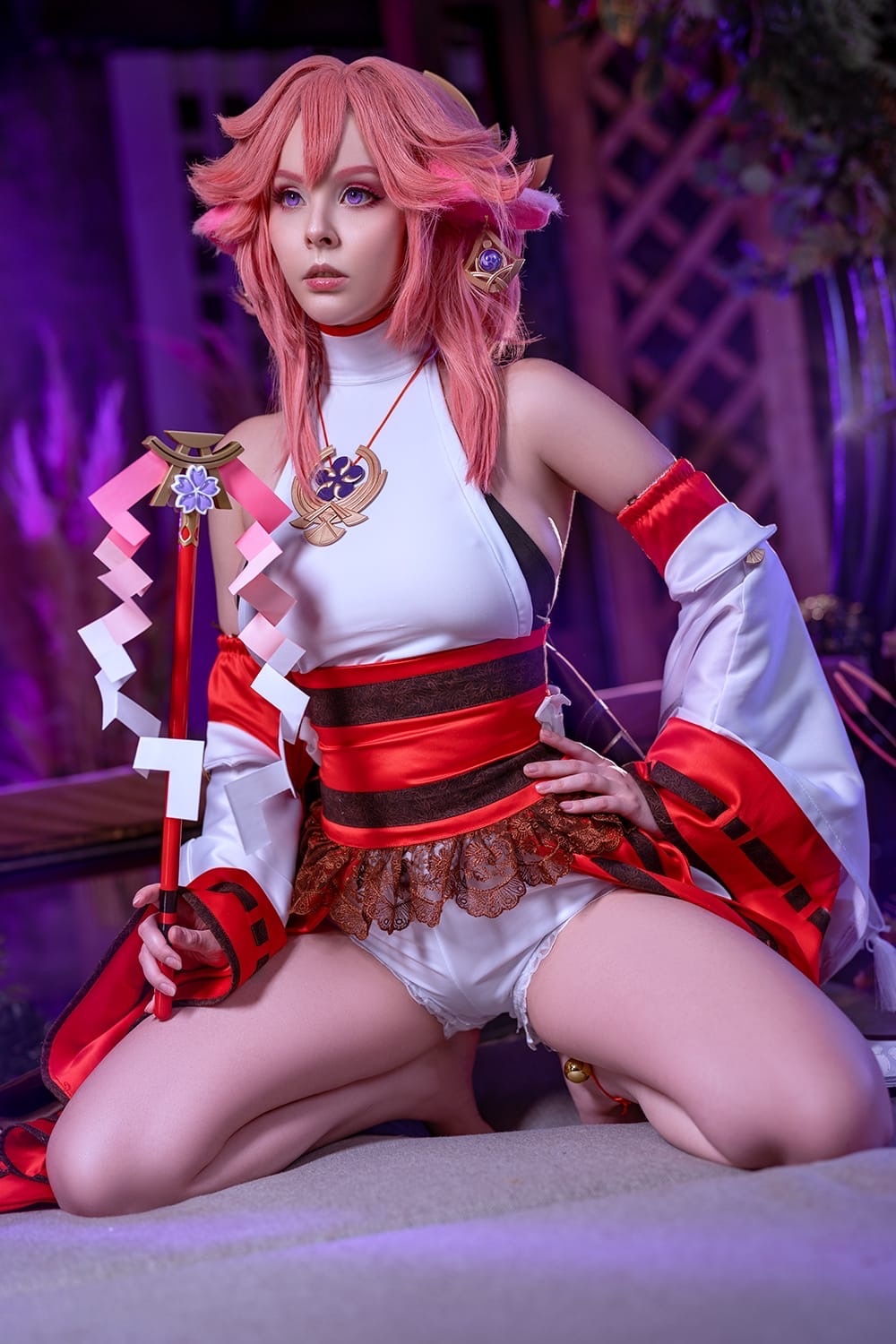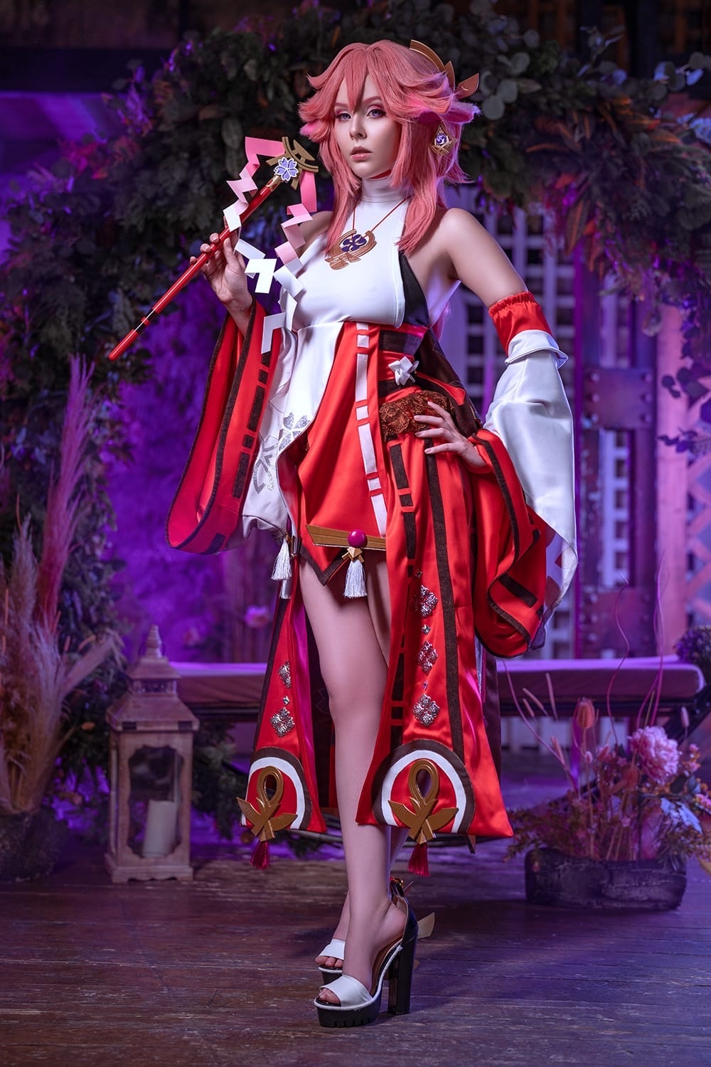 Модель Helly Valentine представила косплей Яэ Мико из игры Genshin Impact. Фото были размещены в социальных сетях девушки.