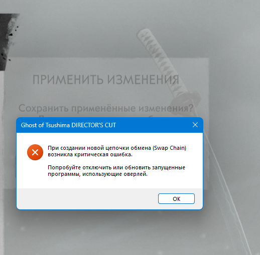 Ну а сделать как сказано в этом окошке пробовал? Отключал MSI Afterburner, GeForce Experience и прочее, что имеет оверлей? Под "отключал" имеется в виду завершение процесса в Диспетчере задач, а не просто закрытие окошка программы.