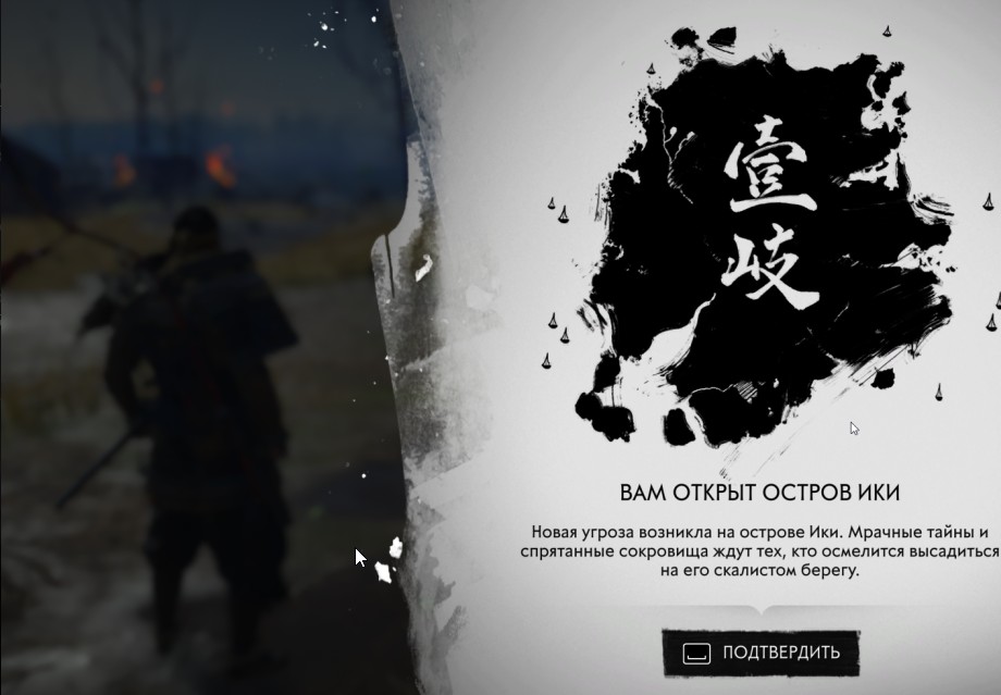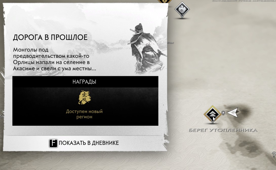 Во 2 акте, идешь на Берег утопленников, находишь там юрту монголов, осматриваешь вокруг все. Появляются монгольские шаманы с группой поддержки, убиваешь всех. Допрашиваешь одного из шаманов, ГГ накрывают какие-то воспоминания, потом много болтовни, потом появляется сообщение, что вам открыт остров Икки, и задание "Дорога в прошлое".