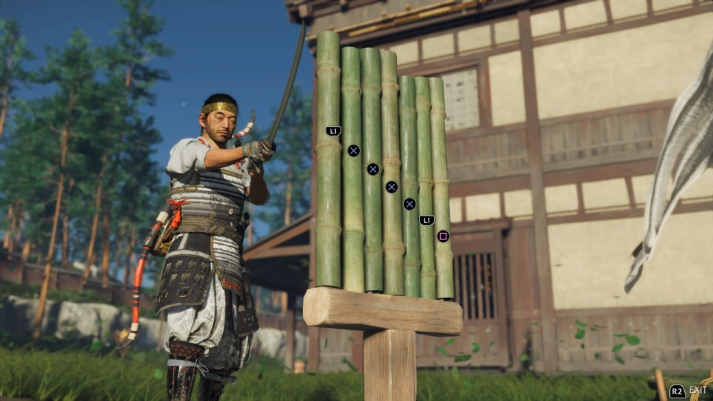 Там вообще-то не пустые вопросы, а возможность получить новый сет, поправить здоровье, а так же навыки, которые ну очень пригодятся особенно в массовых конных сражениях. Не говоря о том, что многие редкие ингредиенты мало найти, до них еще нужно добраться, решив весьма не простые загадки. И если, чтоб срубить все бамбуки вам понадобится лишь запомнить комбинацию клавиш, то, чтоб поразить из лука все 7 мишеней равноудалённых от ГГ мене чем за 7 секунд, надо уже иметь хорошо прокаченное вооружение, и броню с упором на концентрацию.