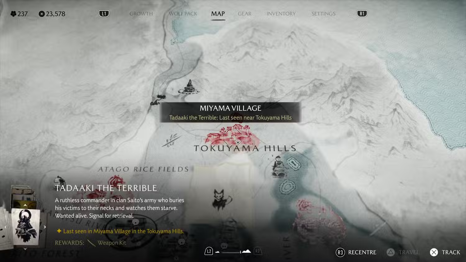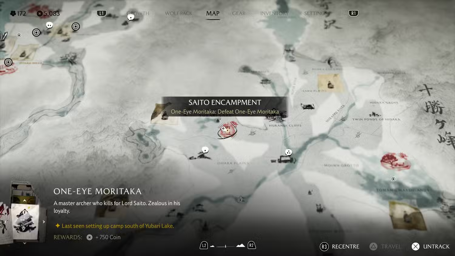- После взятия контракта нужно отдохнуть у костра в лагере, где появится поселенец — сам Ёситомо, скрывающийся под личиной странника.