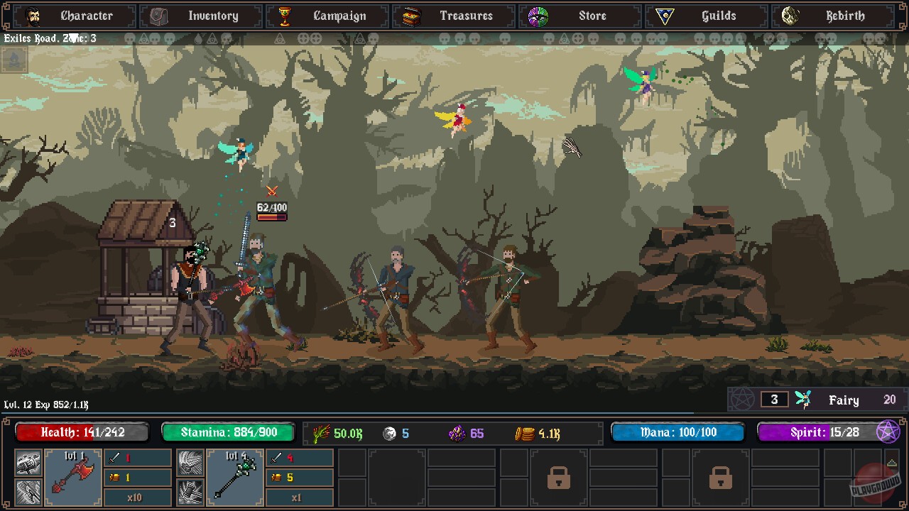 Кликер с RPG-элементами, где вам нужно постоянно щёлкать мышкой и развивать персонажа. По сюжету некромант Зотания спасает вас от смерти, чтобы вы помогли ей собрать какие-то кости хаоса и избавить мир от красного тумана. Ну а геймплей устроен так: ваш персонаж постоянно бежит слева направо по экрану, а вы кликаешь на врагов, чтобы их атаковать. Враги бывают наземные и летающие — по летающим можно стрелять издалека, но если кто-то подбежит близко, то придётся только в ближнем бою махать мечом.