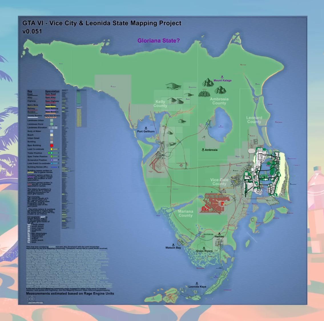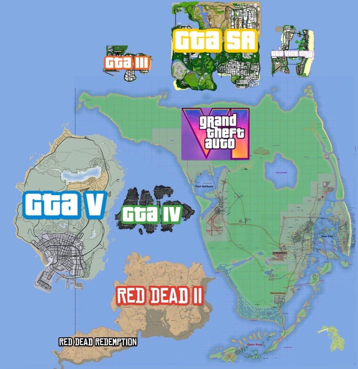 Воссозданная карта GTA VI из сотен мелочей, будоражит воображение.