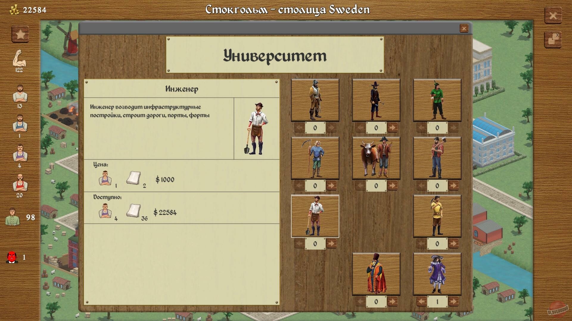 Разработчики запихнули в игру всё, что только можно — полноценную экономическую модель, где нужно строить склады и дороги для добычи ресурсов, производить из дешёвого сырья дорогие товары, развивать технологии (их тут больше сотни), содержать армию и флот. С дипломатией тоже работать надо — объявлять войны, искать союзников, строить посольства. Даже какая-то система развития рабочих есть — мастер трудится в шесть раз производительнее обычного работяги.