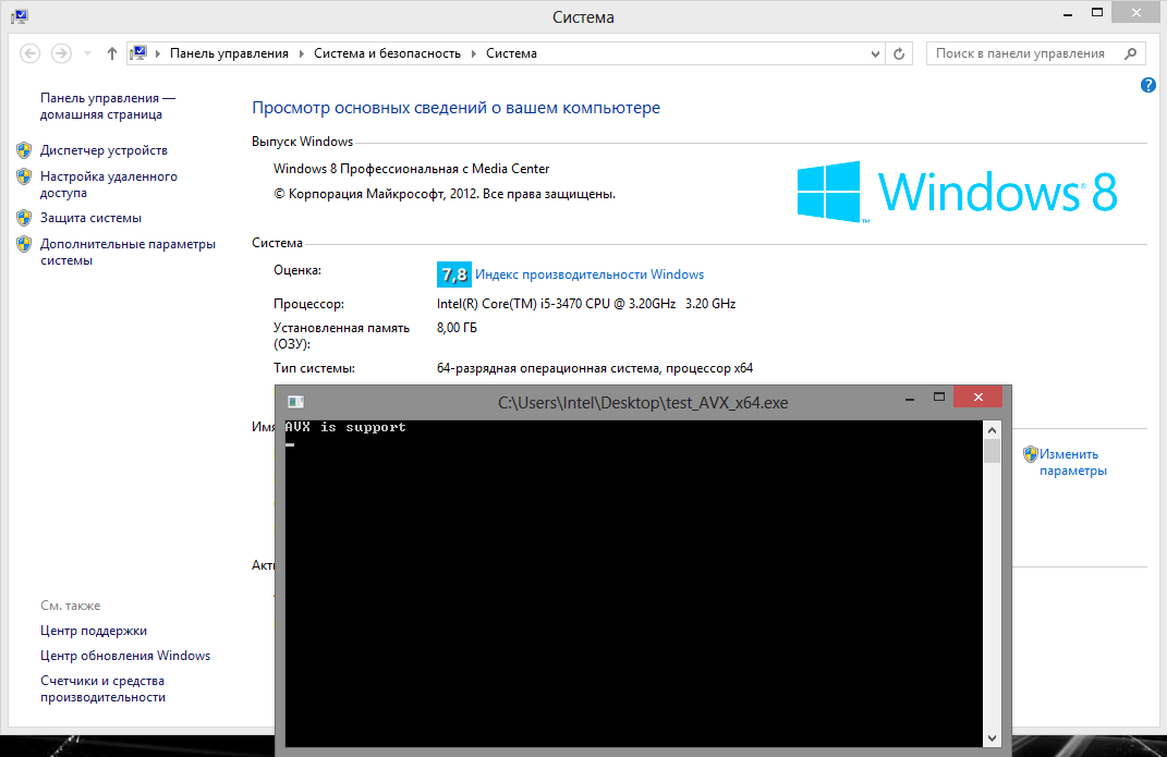 проверьте моей программой на поддержку инструкций AVX http://rghost.ru/46760173 (в архиве есть и для 32-битных ОС и для 64-битных ОС).