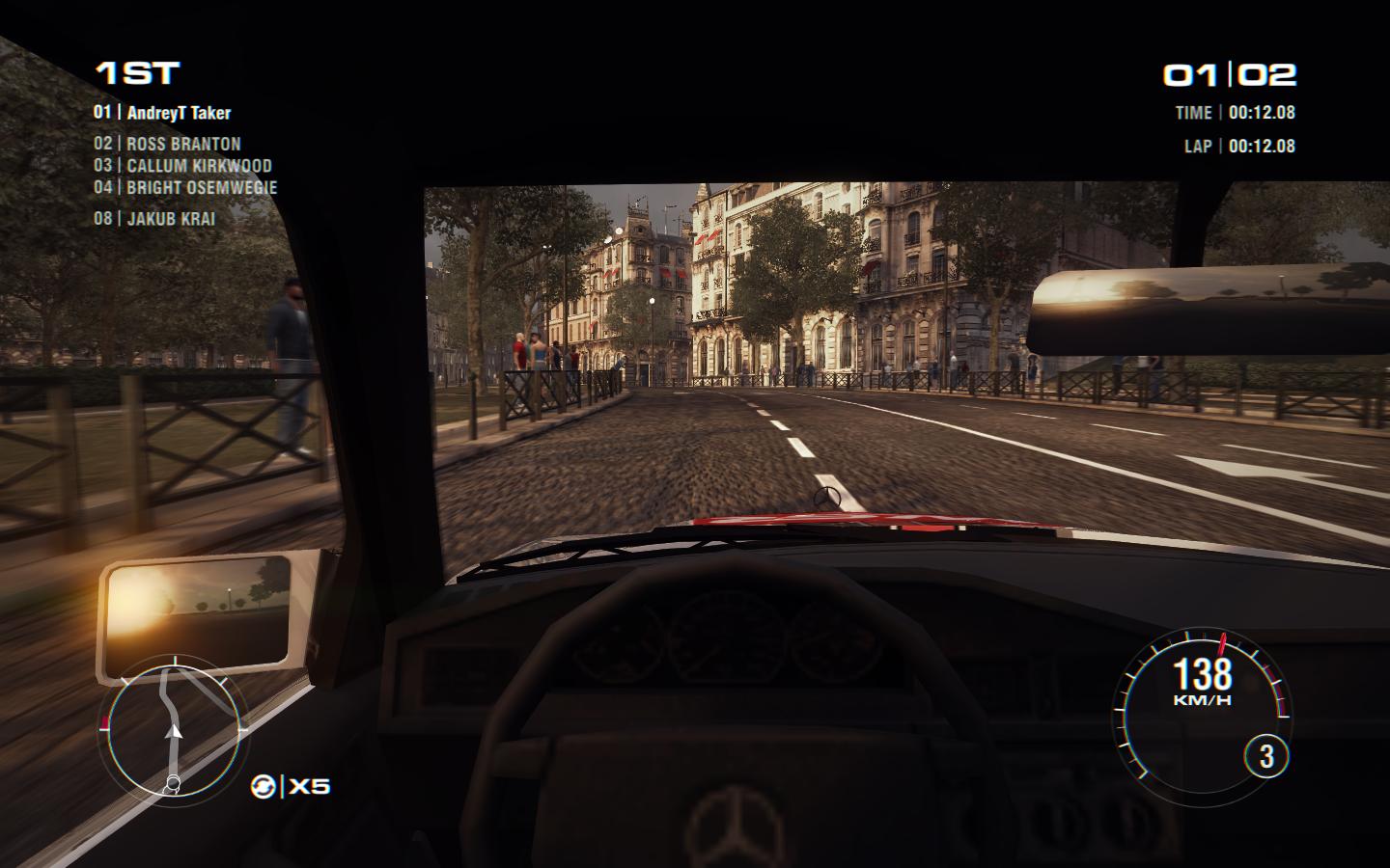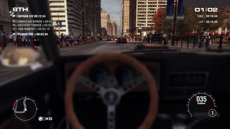 Не знаю как остальные имеющие в распоряжении игровые рули, а мне не привычно играть без вида из кабины, может потому что даже в NFS SHIFT 2 Unleashed он был... Но так как это аркада чистой воды-руль тут и нафиг не нужен.