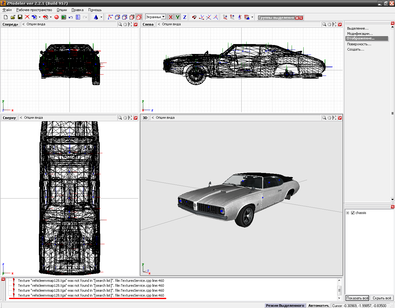 На этом работа ZModeler 2.2.1 закончена. После окончания экспорта могут вылезти ошибки типа Extra slot occupied for texture Layer #2 in material "paint2 [CLR:1]". Не обращай на них внимания.