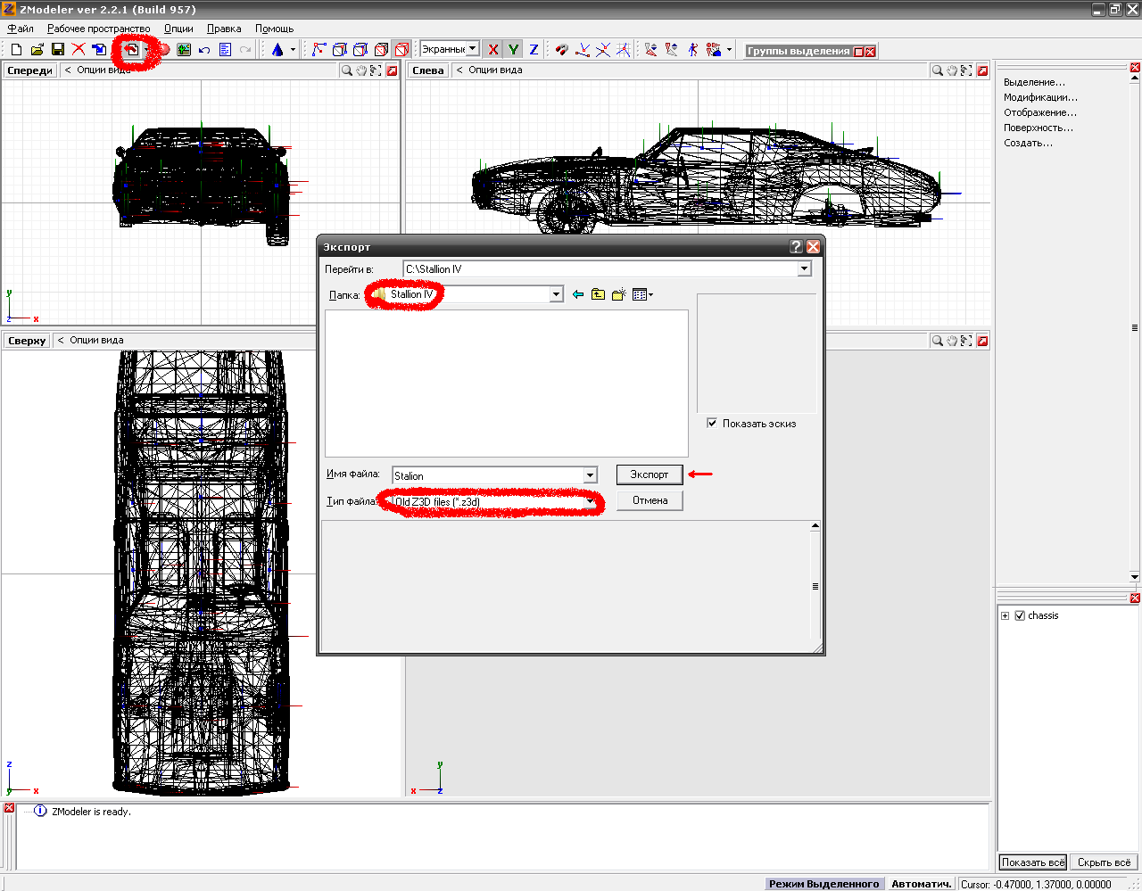 3) Импортирование в ZModeler 2, экспортирование в Zmodeler 1