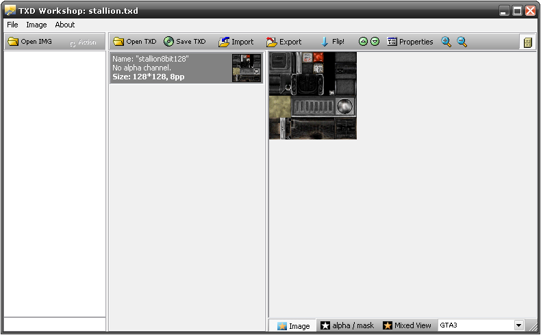 Теперь будем создавать txd архив для нового Сталлиона. За основу возьмём txd старого и удали все текстуры, кроме одной.
