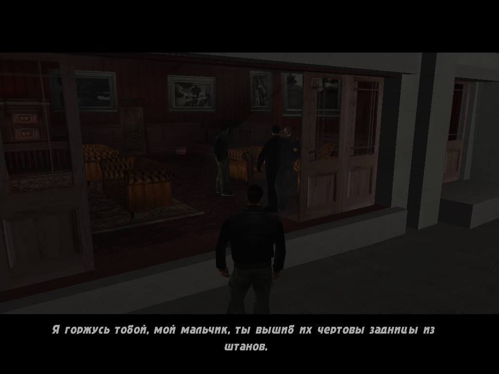 2) Недавно я перепроходил миссию "Последние запросы" и заметил, что в ролике в последнюю секунду появляется незнакомец, саму кат-сцену я не смог отключить - вылет помешал, поэтому я прибегнул к помощи одной утилиты. Я узнал, что незнакомец это член мафии, про него не писали вроде. Вот он: