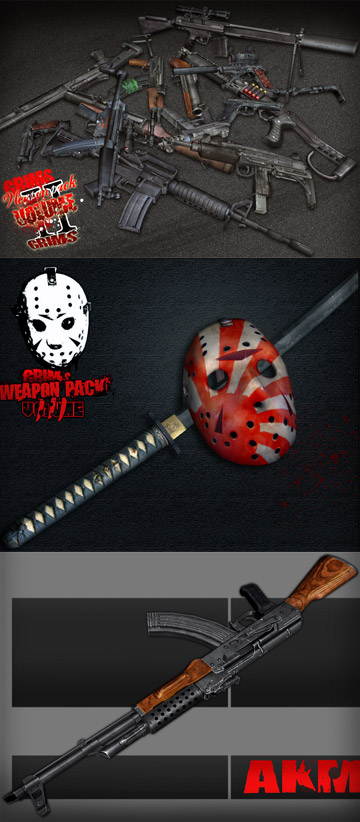 GRIM's Weapon [Big Pack] - большой пак нового оружия для GTA IV. Высокая детализация, проработка элементов, текстуры, правильное положение рук - все это здесь есть. Такой пак уже был для GTA San Andreas, и получил заслуженную любовь.