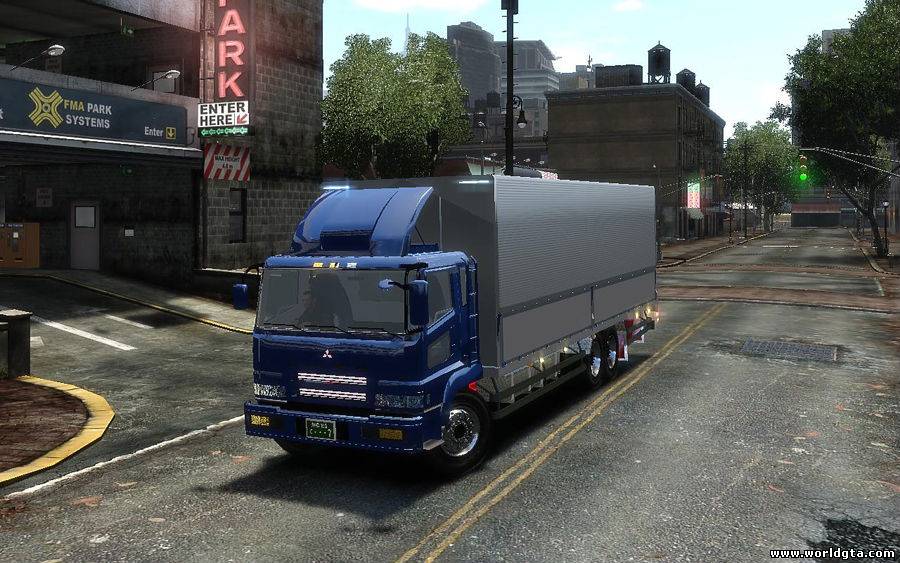 Грузовик Mitsubishi Fuso для GTA IV на удлиненной базе. Он на пару метров длиннее обычного грузовика Fuso. Уходить от полиции на таком, настоящее удовольствие, из него получится не плохой таран.
