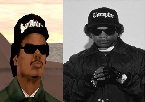 Поищи на форуме GTA SA, персонажи и их прототипы кажется
