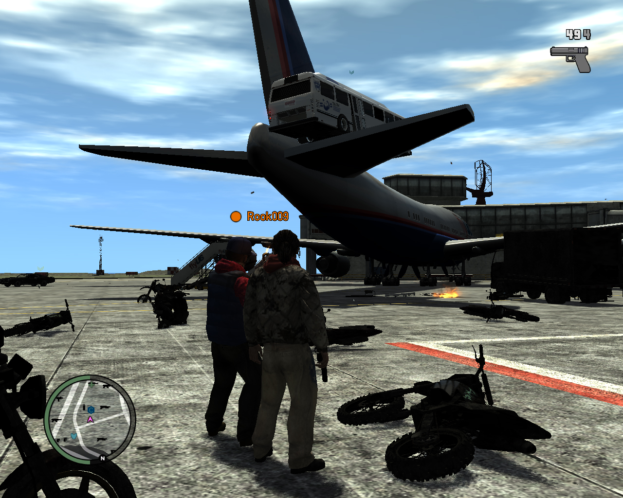 Ну, в основном стебемся над читерами, которые не хотят помогать и спавнить машины или вертолеты.) Еще любим устраивать в аэропорту догонялки, один на мотоцикле или тачке угоняет от другого чела на вертолете. Или валим друг друга с ракетометов.