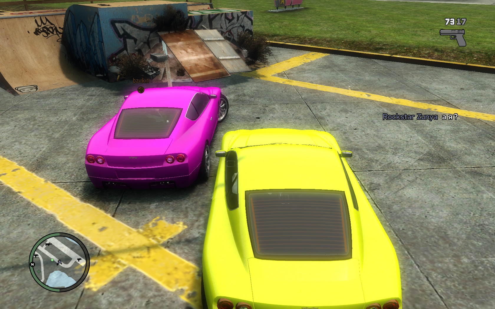 3. Люди в мультиплеере также видят, что ваш транспорт имеет необычайную расцветку, не похожую ни на что другое. Но! Они будут видеть не тот цвет, который сейчас видите вы! Предположим, вы считаете, что сидите в ярко-желтом авто, кто-то находящийся рядом с вами, что вы в синем авто, а кто-то еще, что в розовом. Объяснения этому я найти не могу. Вот уж действительно, парадокс.