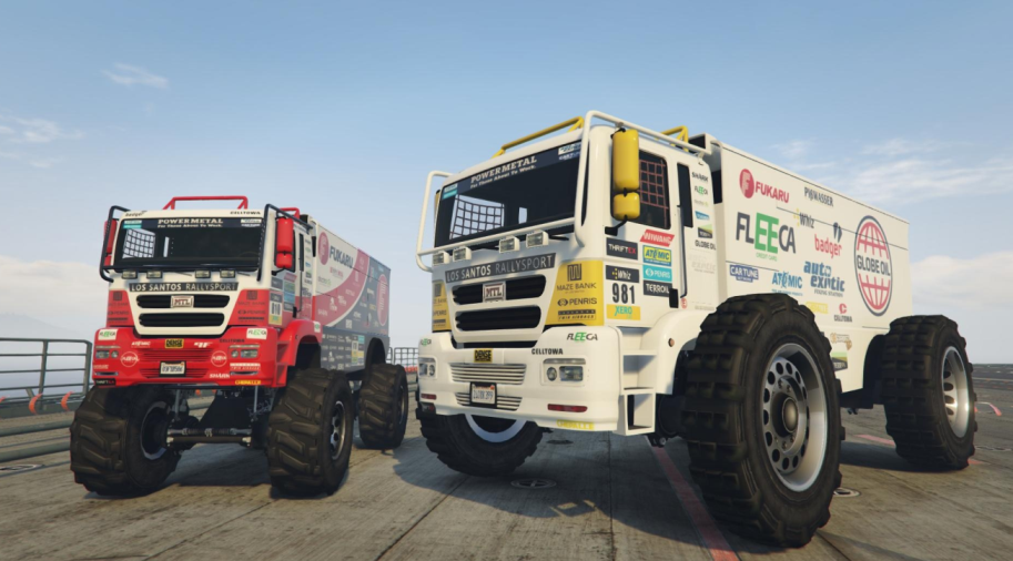 Моды для GTA 5 Rally Truck. Особенности: модель совместима с основными функциями игрового движка; качественная HQ модель; подробно проработанный салон; настроенный свет фар; функционирующие стоп-сигналы, габаритные огни, указатели поворотов; бьющиеся кузов, фары и стекла; остаются дыры от попадания пуль; работающие приборы; настроенная камера при вождении от первого лица; 3D шины и диски.