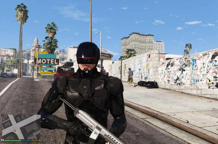 Предлагаем Вашему вниманию очередного героя комиксов и фильмов — Robocop. Наведите полный порядок на улицах Сантоса, либо же наоборот, правьте над хаосом. Каждый герой обладает своими отличительными характеристиками. Имеет отличительный внешний вид. Ни на кого не похож. Надоели стандартные персонажи игры? Тогда решайте кем Вы хотите сегодня быть, выбирайте любого из доступных героев фильмов и мультсериалов, и наслаждайтесь временем проведенным в любимой игре GTA 5. Желаем Вам приятной игры. Удачи Вам.