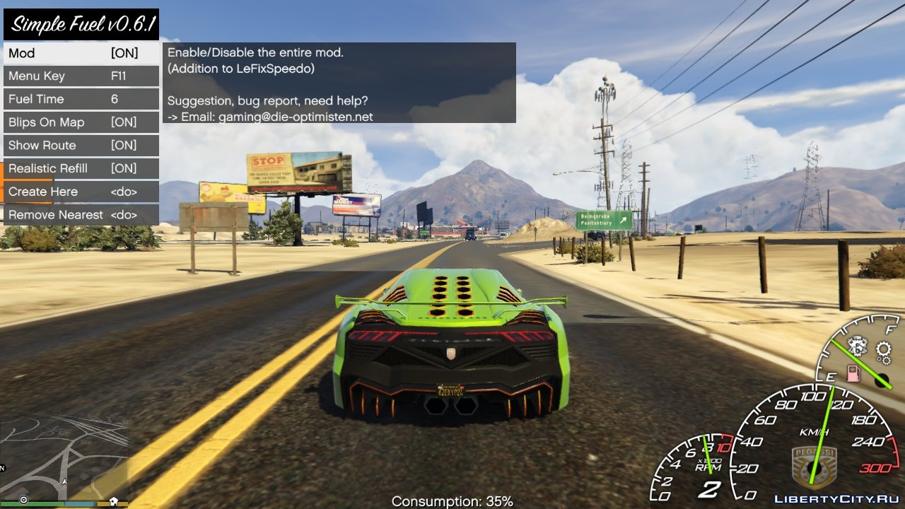 Этот скрипт расширяет возможности использования бензина в игре. Теперь же доступен индикатор топлива для всех автомобилей, заправиться можно как и на заправочных станциях, так и с топливной канистрой. Также присутствует меню мода с различными настройками.