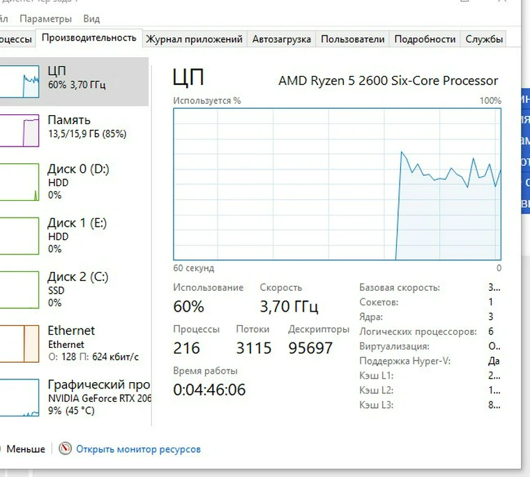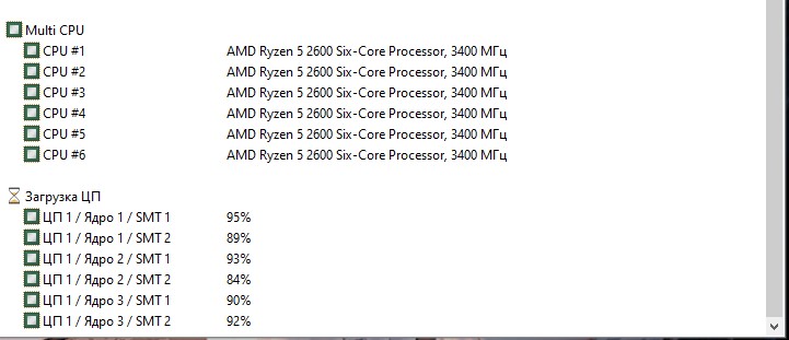 Верхний скрин - находясь просто на рабочем столе при включённой игре, нижний - в процессе игры. В один момент уловил, что нагрузка была 100% на всех ядрах. Когда ничего не включено, просто рабочий стол, загрузка 20-35℅.