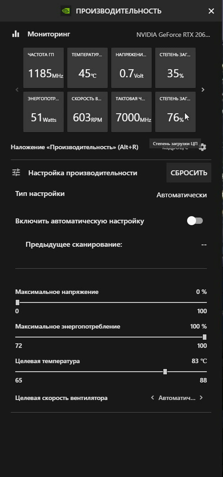 Драйвера все обновлены, температура видеокарты - процессора в норме, нагрузка на оперативку также не превышает 85%, степень загрузки видеокарты ГП - 20-30%, ЦП - 60-90%.