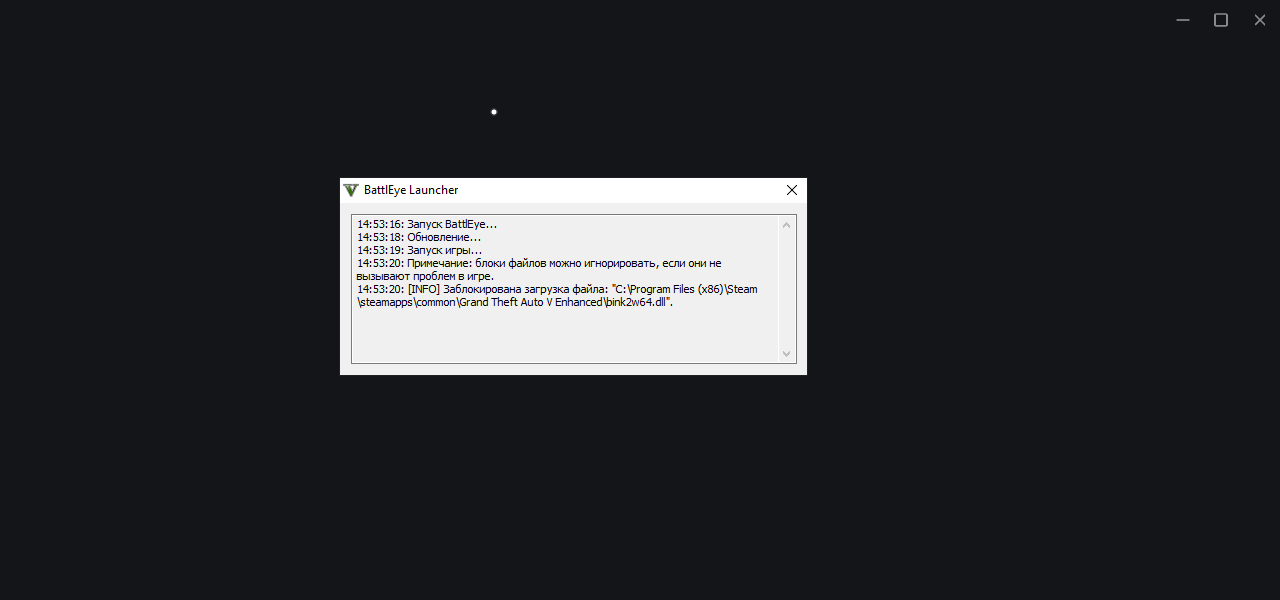 При запуске GTA V Enhanced открывается лаунчер, а после начинает открываться сама игра и вылетает такое окно