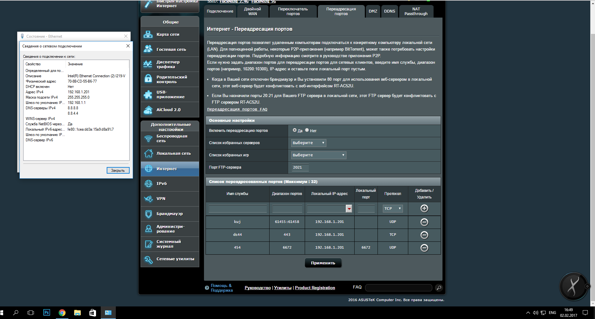 Далее дело обстоит вот в чем, при пробросе портов на маршрутизаторе, я все равно не могу через них работать они тупо закрыты.