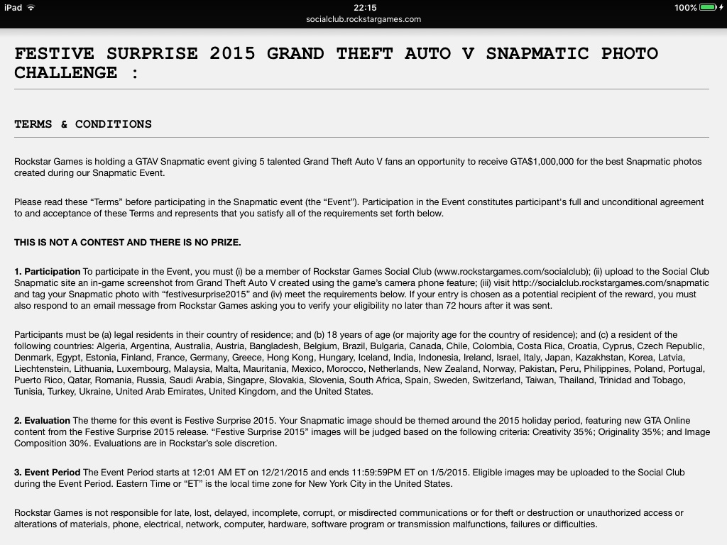 Rockstar раньше времени открыла доступ к странице с правилами рождественского розыгрыша Snapmatic. В правилах указано, что ивент пройдет с 21 декабря по 5 января, поэтому, скорее всего, доступ к рождественскому DLC для GTA Online откроют 21 числа.