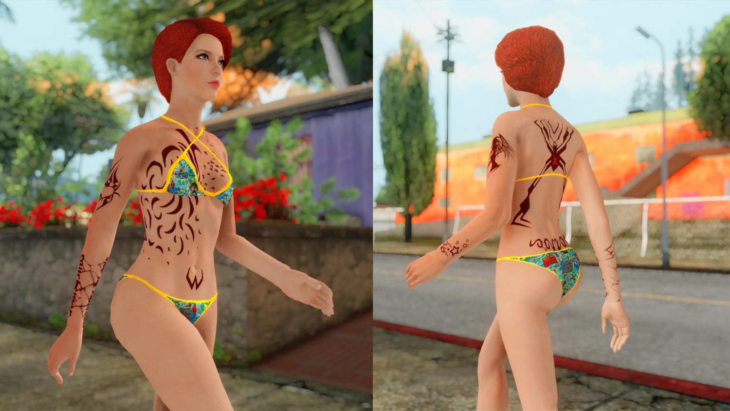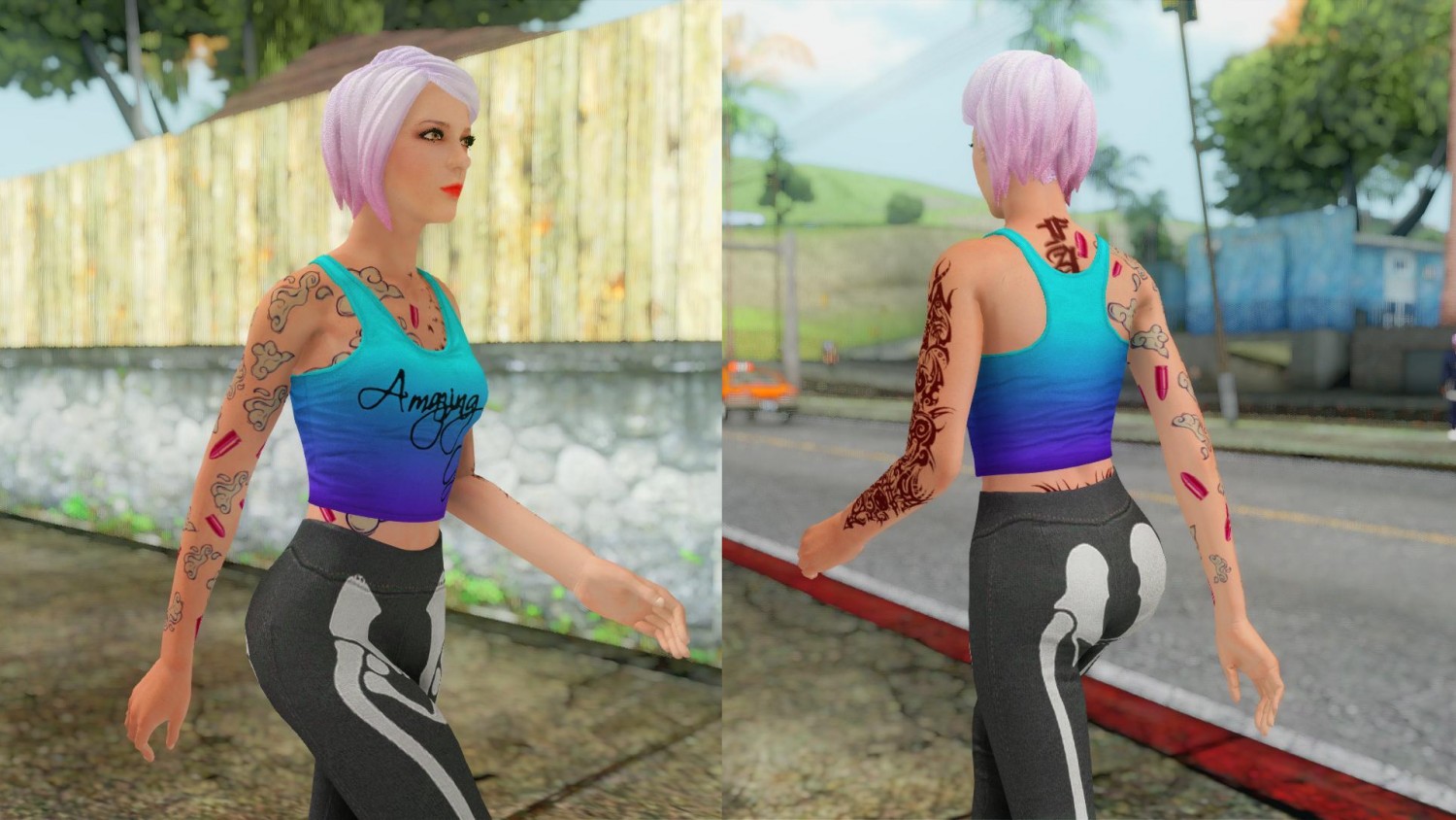 Сама модификация представляет собой полную замену главного героя игры GTA San Andreas на женского персонажа. То есть все стандартные вещи, аксессуары, прически, татуировки и базовые анимации движения были заново сделаны и заменены.