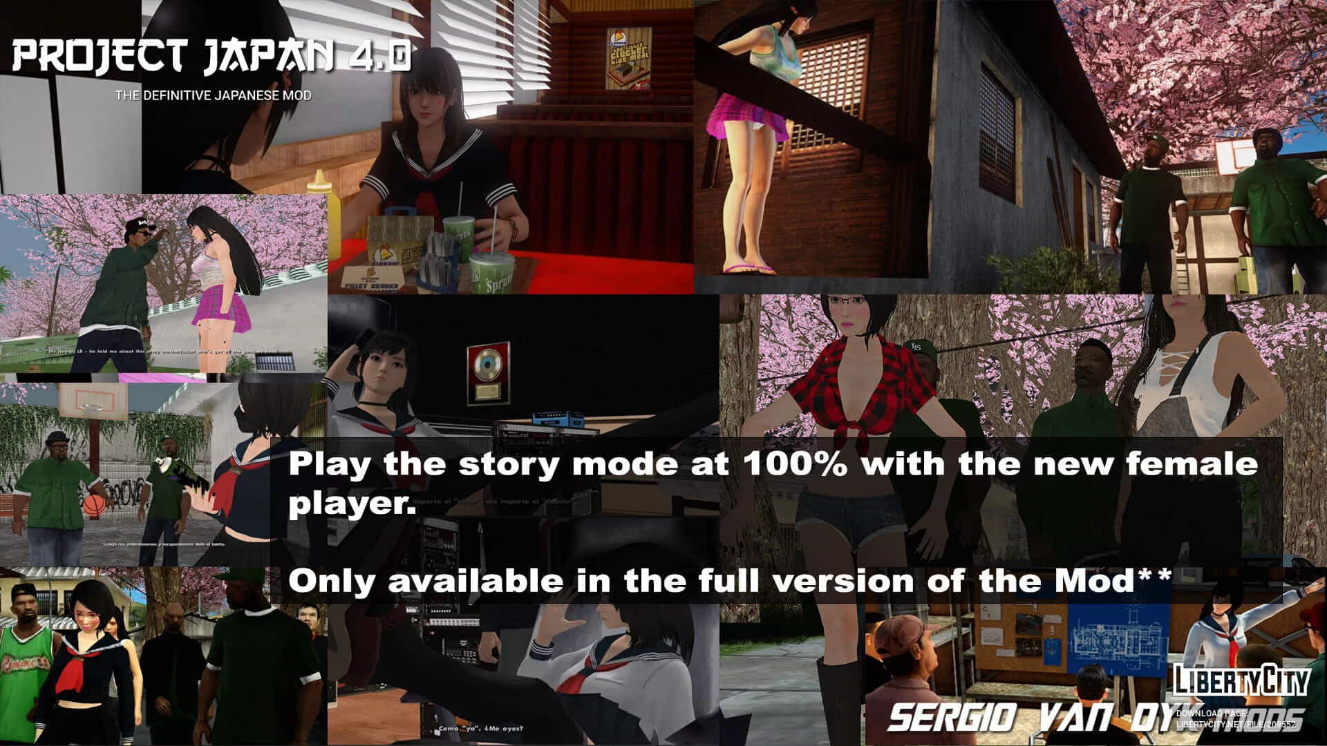 Данная модификация преображает оригинальную GTA San Andreas под японскую стилистику, добавляя соответствующие модели машин и персонажей, а также новые текстуры и многое другое.