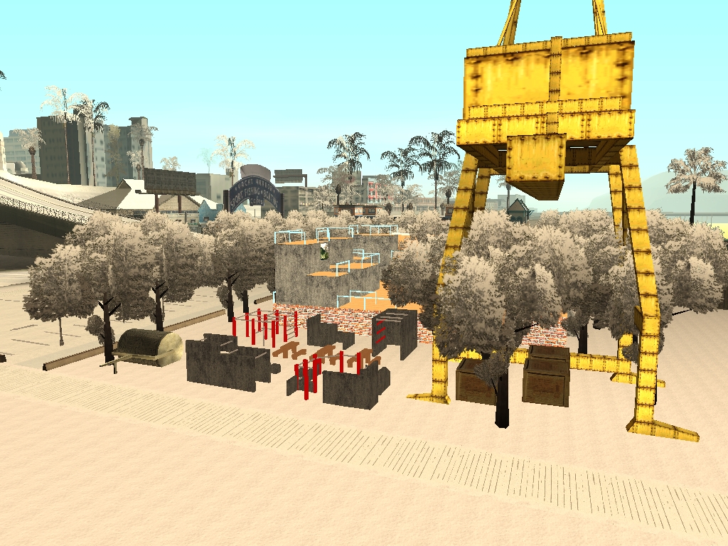 ка52аллигатор Скрины какбэ намекают, что деревья (и пальмы, кстати) в песке - реально. Подходящее место? -где-нибудь в городе. Ведь в ЛС есть скейт-борд площадка.
