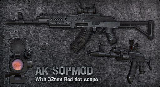 AK-sopmod - это модификация ак-103, которая обладает оптическим прицелом. Выглядит довольно внушительно.