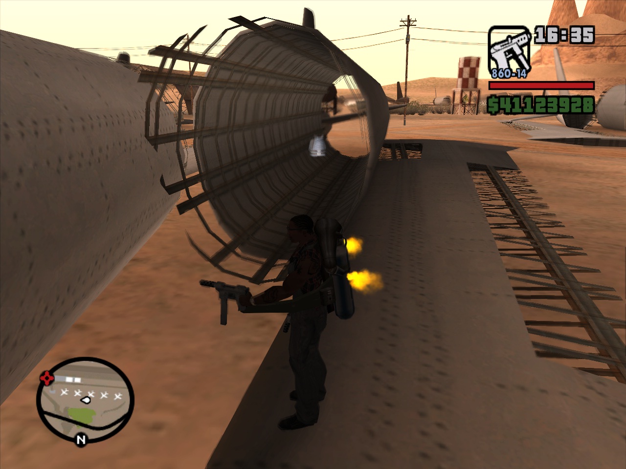 Чтобы убедиться окончательно в этом, я поехал сохранился в дом СиДжея, после чего вышел, взорвад Гидру на крыше доама Свита, расстрелял приехавшего на 2 звезды копа, оседлал его мото, обрёл 3 звезды, и поехал по канаве на юг, в сторону доков мимо дома СиДжея возле магазина Эммета.