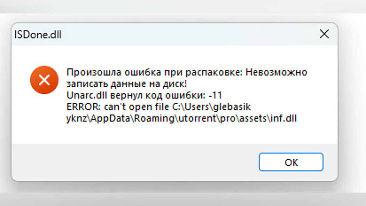 Не могу установить игру вылетает такая ошибка (на скриншоте) все уже перепробовал. Отключал антивирус (его нет в системе) отсутствует кириллица в пути, файлы уже много раз переустанавливал, запускал от имени администратора, ставил совместимость. В какой то момент установщик запускается висит в фоне, но не высвечивается. Не знаю уже, что делать. репак от Chovka