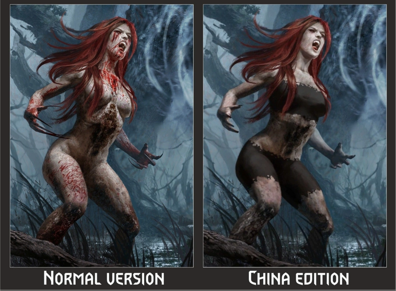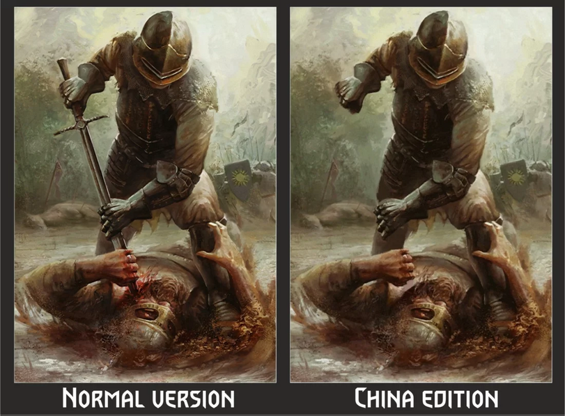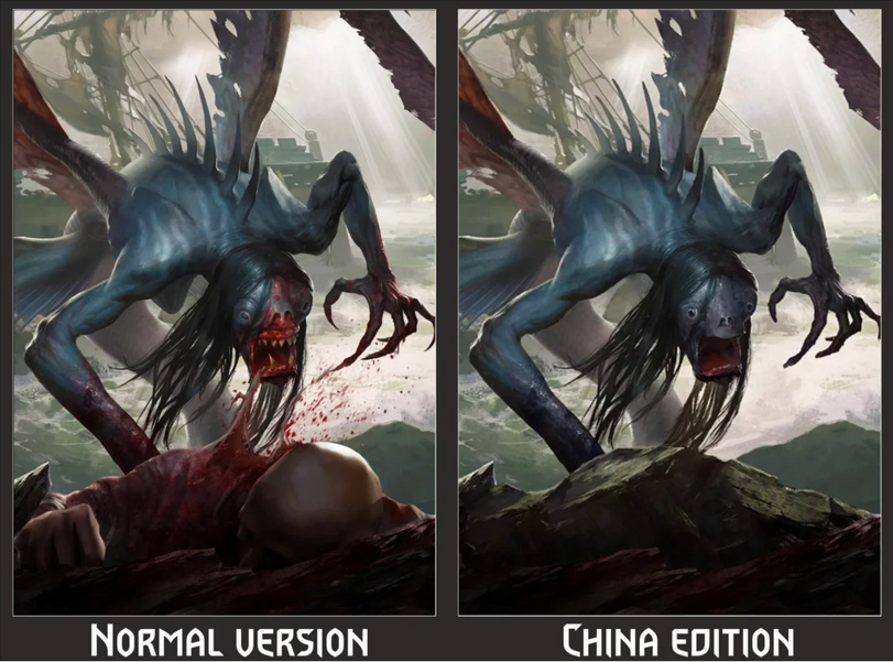 В то, что сиськи прикрыли и кровищу замазали, ещё можно поверить, но оружие цензурить — уже сюр какой-то и фейком попахивает. Да и как будто бы в самом Китае кровавых игрушек с оружием не делают.