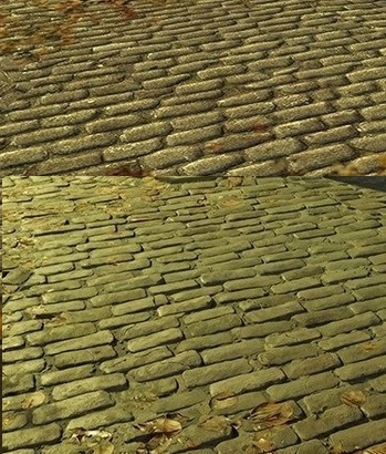 четкие фототекстуры оригинала против серой процедурной мазни