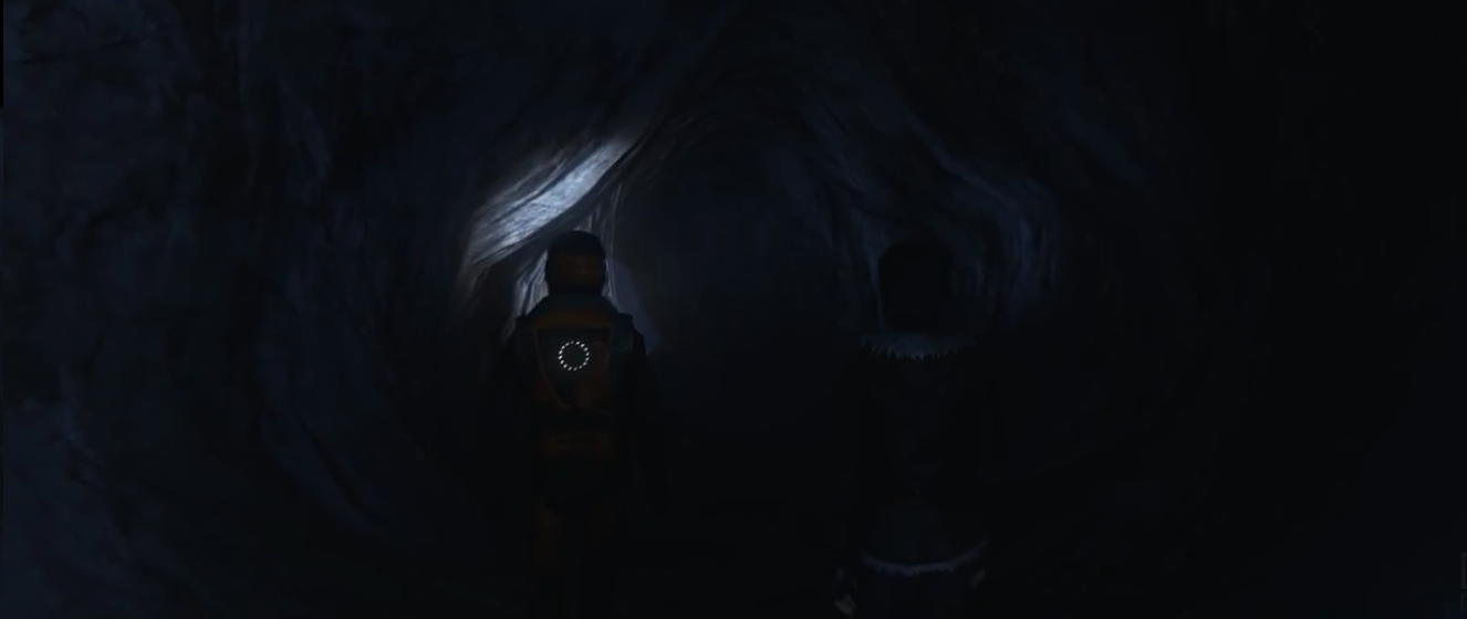 На поверхности во всю идёт снегопад, обломки уже успели покрытьсь небольшим слоем снега. Фримен активирует шлем. Слой снега оказывается нам по колено, и мы с большим трудом передвигаемся от обломка к обломку. Мы ищем обломки под снегом с помощью датчика тепла, который мы подпитываем зарядами энергии, которые нам также удаётся найти под снегом. В конечном счёте, нам удаётся найти аккумулятор. Снегопад начинает перерастать в снежную бурю. Особо сильные порывы ветра отнимают у нас энергию костюма на обогрев. Мы возвращаемся в ущелье к Аликс, где, благодаря стенкам ущелья, метель практически не ощущается. Аликс: “Гордон, ты вернулся. Тебе удалось найти что-нибудь? Отлично! Поставь его на место и посмотрим, сработает ли”. Мы подключаем аккумулятор, и радар включается. Аликс: “Так, посмотрим. Что? Этого не может быть! Гордон, смотри!” Аликс показывает пальцем на радар: “Видишь эту точку? Это Борей. Готова поклясться, что мы были прямо над ним до... ну ты понял. А сейчас мы километрах в 60-ти от него! Неужели папа был прав и там что-то есть.” Радар отключается. Аликс: “Ладно, нужно двигаться. Наверху как, прохладно? Думаю, лучше идти по ущелью, у меня же нет согревающего костюма. Ах, да, чуть не забыла: держи, это, конечно, не твоё любимое оружие, но он здесь по полезнее будет”. Аликс бросает нам ледоруб с красной ручкой. Мы идём по ущелью пока не упираемся в гору. В горе мы видим вход в пещеру. Аликс: “Что ж, другого пути у нас нет, придётся туда заглянуть”. Мы с Аликс и Псом заходим в пещеру.
