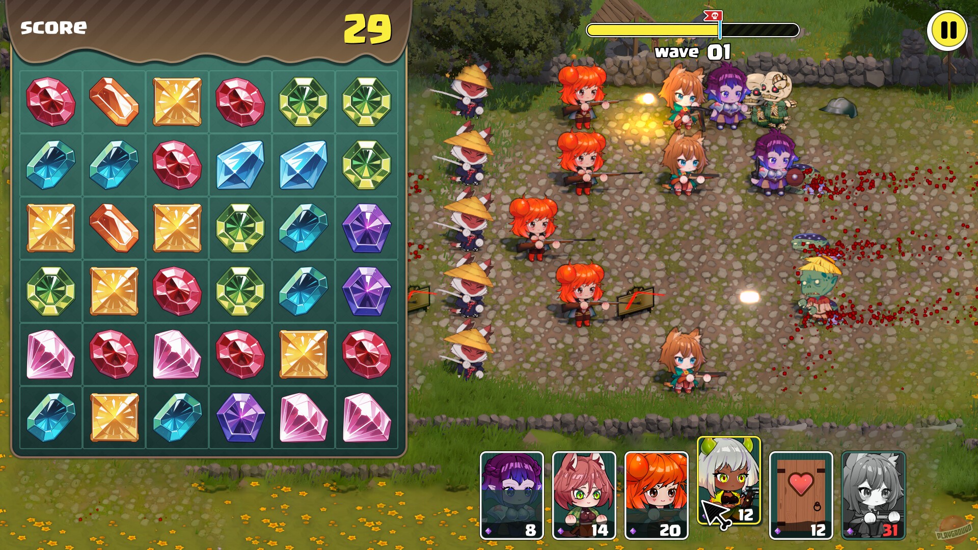 Harem vs Zombies – это сочетание механик жанров RTS, Tower Defense и Match-3. Играйте сразу на двух полях, улучшайте своих девочек-защитников и разбивайте орды грозных врагов. Спасите мир и получите свою награду