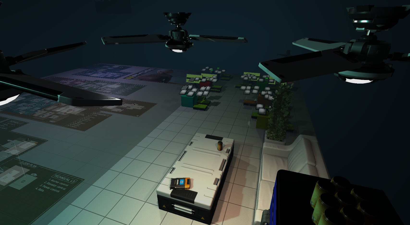 - Полноразмерная карта на полу со всеми пометками и точками перехода