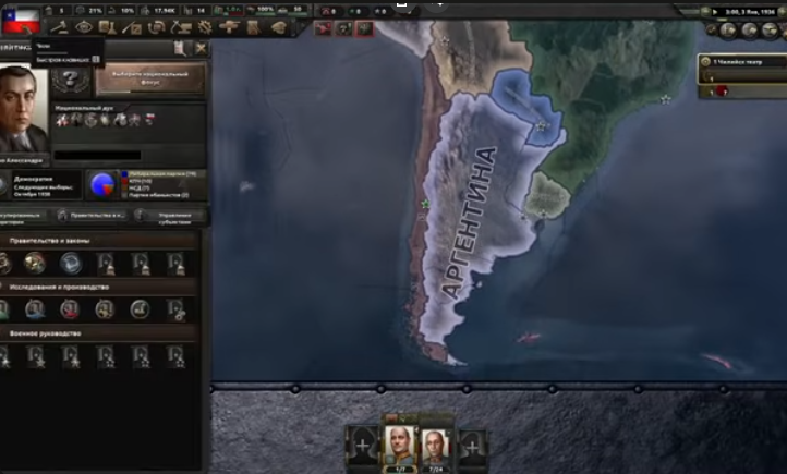 Игра шла по историческому пути с DLC. Аргентина стала ф, создан союз — Лига Латиноамериканского превосходства.