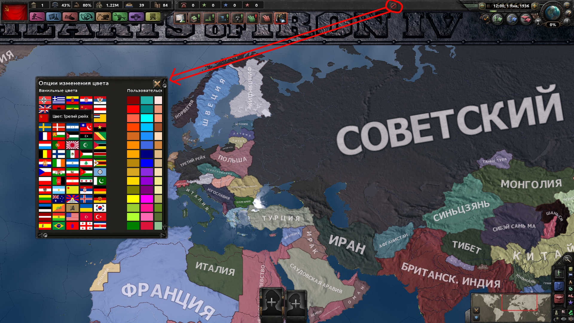 Теперь, благодаря этому моду вы можете изменить цвет вашей страны, а так же, управлять цветом любого AI-игрока.