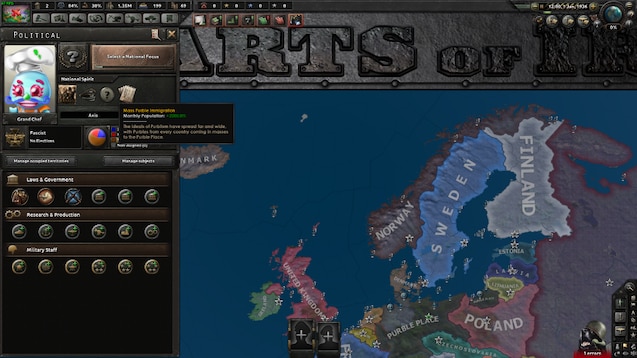 Что, если Пурбл проиграл первую мировую войну? На этот вопрос этот мод альтернативной истории решается ответить. На рубеже 20-го века движение Пурблс достигло своего пика, все Purble s нацелились на Германию как на новую родину. Это в конечном счете достигло точки, где немцы были меньшинством на их собственной земле, таким образом, Purble сформировал свое новое правительство - Purble Place. Великая война происходит очень похоже на нашу временную шкалу. Австрия объявляет войну Сербии, но вместо Германии, поддерживающей Австрию, Пурбл поддерживает Австрию. Великая Война также закончилась очень похоже на нашу - с жесткими ограничениями на Пурбл в Версальском договоре. В 1933 году, устав от всех ограничений, Великий Шеф-повар создал свое собственное правительство в Пурбл- Плейс и намеревается вернуть Пурблс к их былой славе. Пурбл все еще распространен в Пурбле , тысячи новых иммигрантов прибывают ежемесячно, превращая Пурбл- Плейс в бочонок власти, ожидающий взрыва и мести за свои потери в Первой мировой войне.