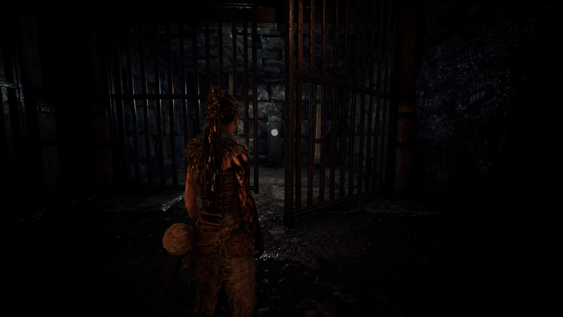 2. Далее, вам надо открыть дверь запечатанную тремя рунами. Первый символ можно отыскать в темном подземелье с кругами света, в которых мы спасаемся от зверя. Здесь же можно найти и второй камень.
